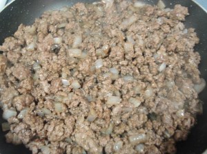 Add a dash of salt, pepper and mushrooms to the meat and stir for a few minutes. Now that the meat is ready, put it off to the side for a few minutes.