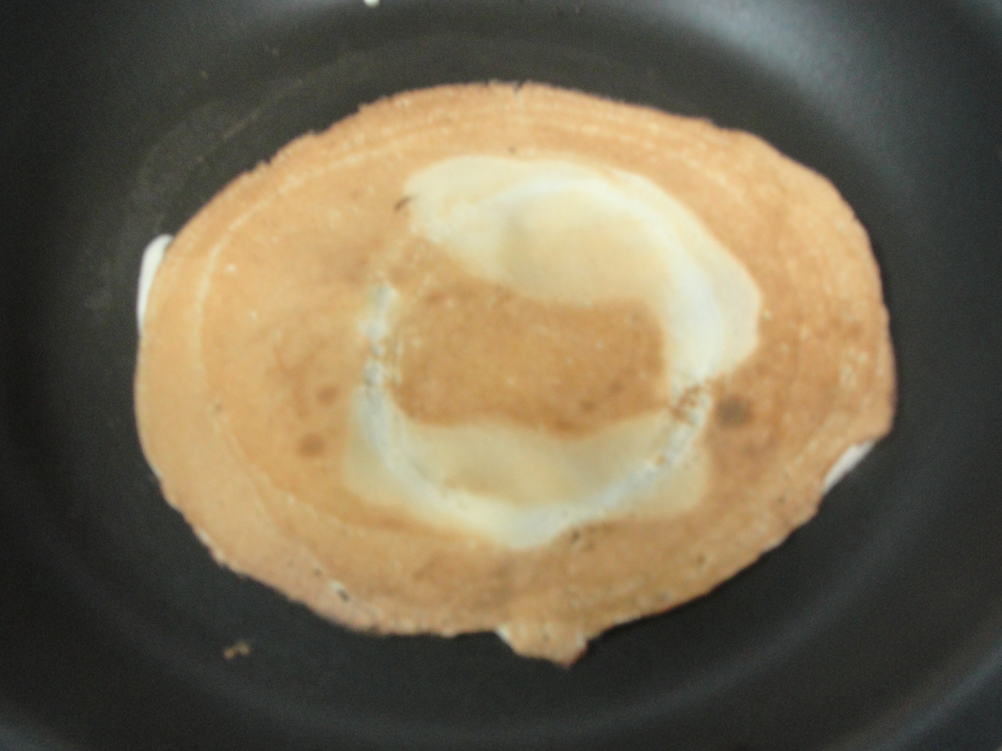 After placing one scoop of the mixture on the saucepan, spread it out on the saucepan in a thin circular/tortilla shape. .