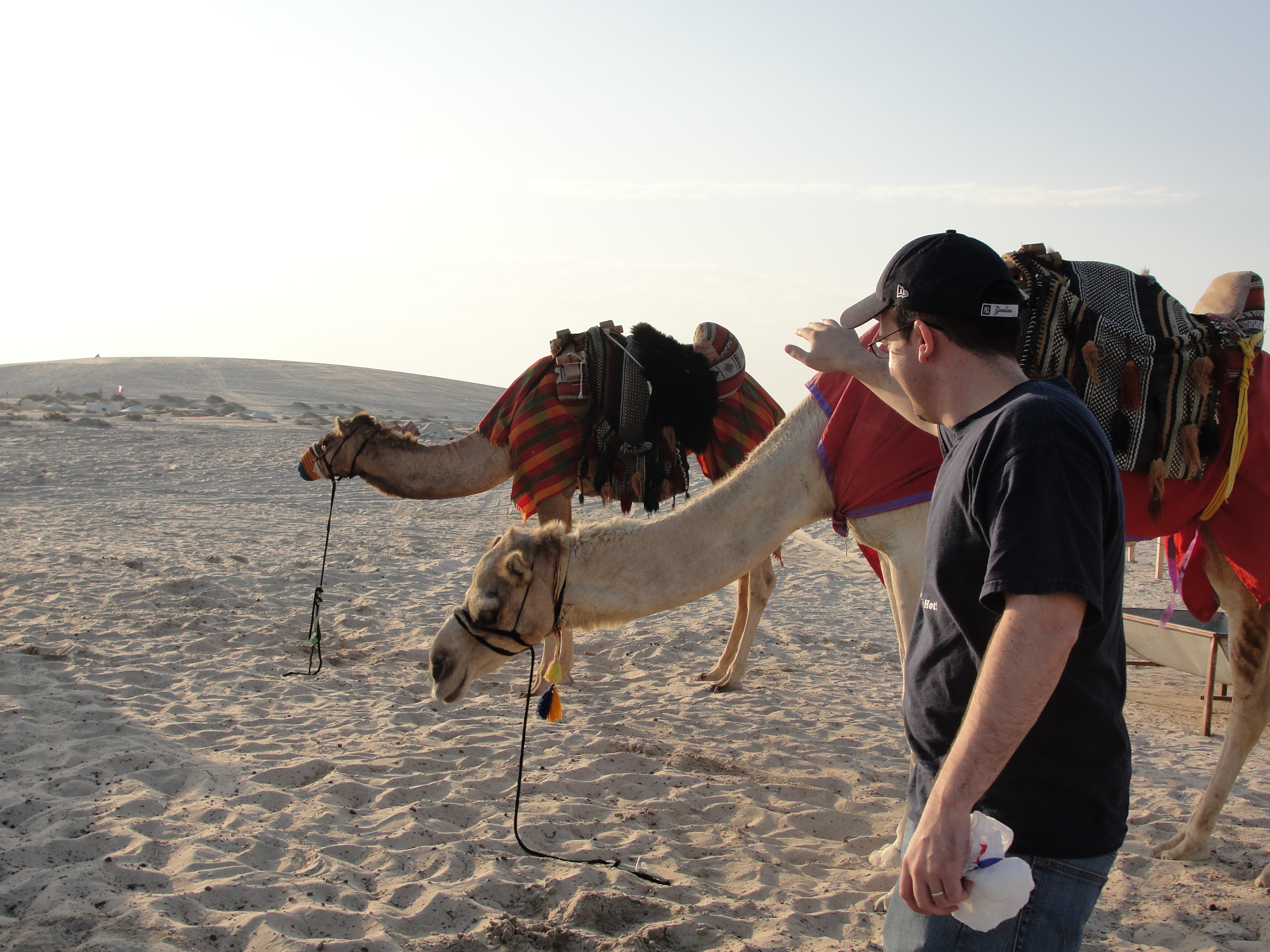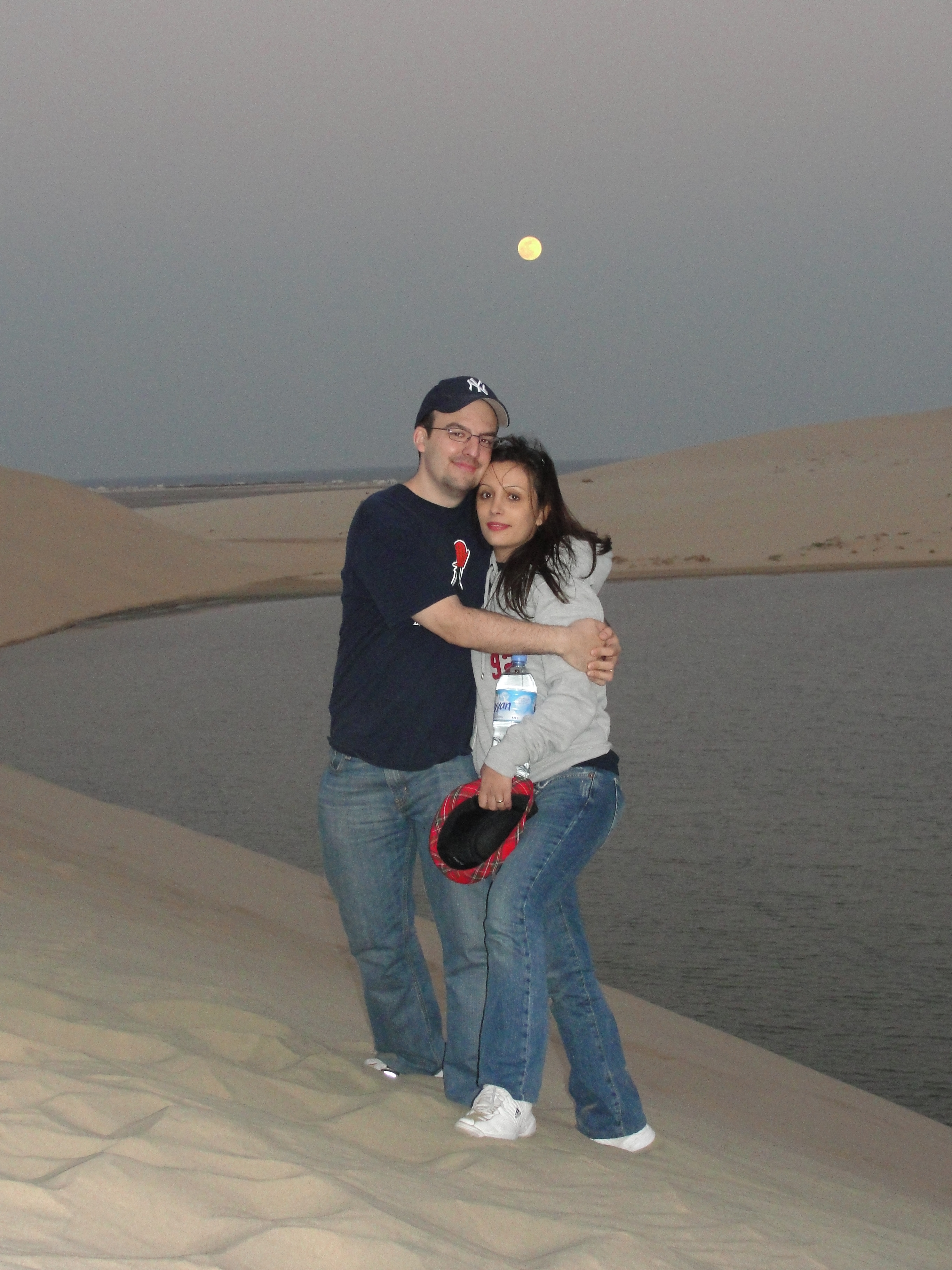 Here are some photos from New Years Eve 2009/2010 in Qatar when we decided to spend New Years Eve in the desert by the Saudi-Qatari border where we went desert camping, dune bashing, sand surfing, and had a camp fire with friends. Our driver decided to go a bit crazy with dune bashing so we lost a tire and had to wait 45 minutes for the other car to arrive, but it was so much fun. Also, that day was when there was a blue moon so i can say, it was once in a blue moon 🙂