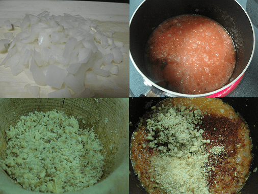 Add the crushed tomato to the onion and add a dash of salt & pepper to the mixture.