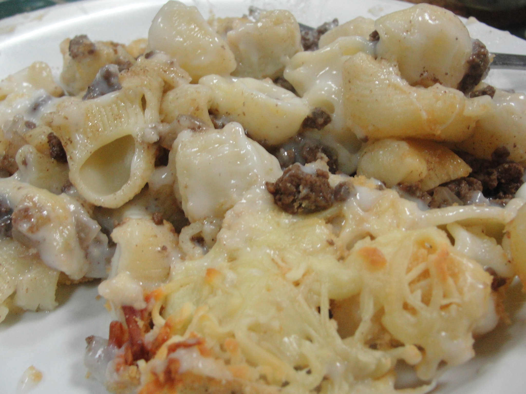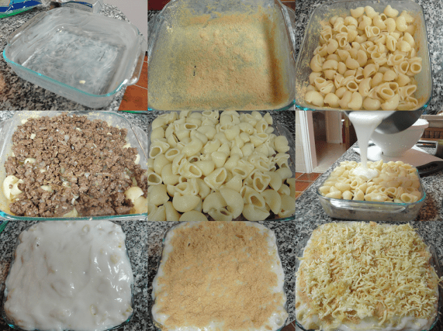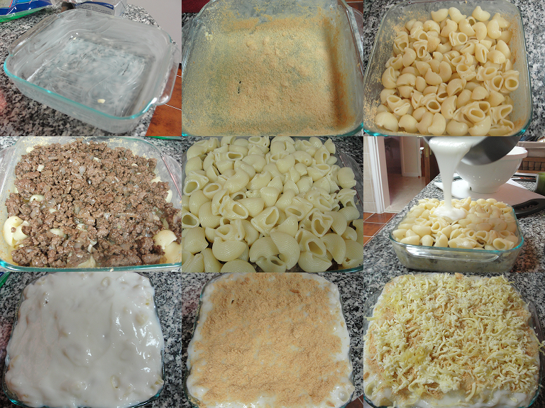 Gratin is a mixture of melted cheese and bread crumbs. Here’s the recipe for the pasta gratin (choose your favorite kind of pasta or spaghetti).