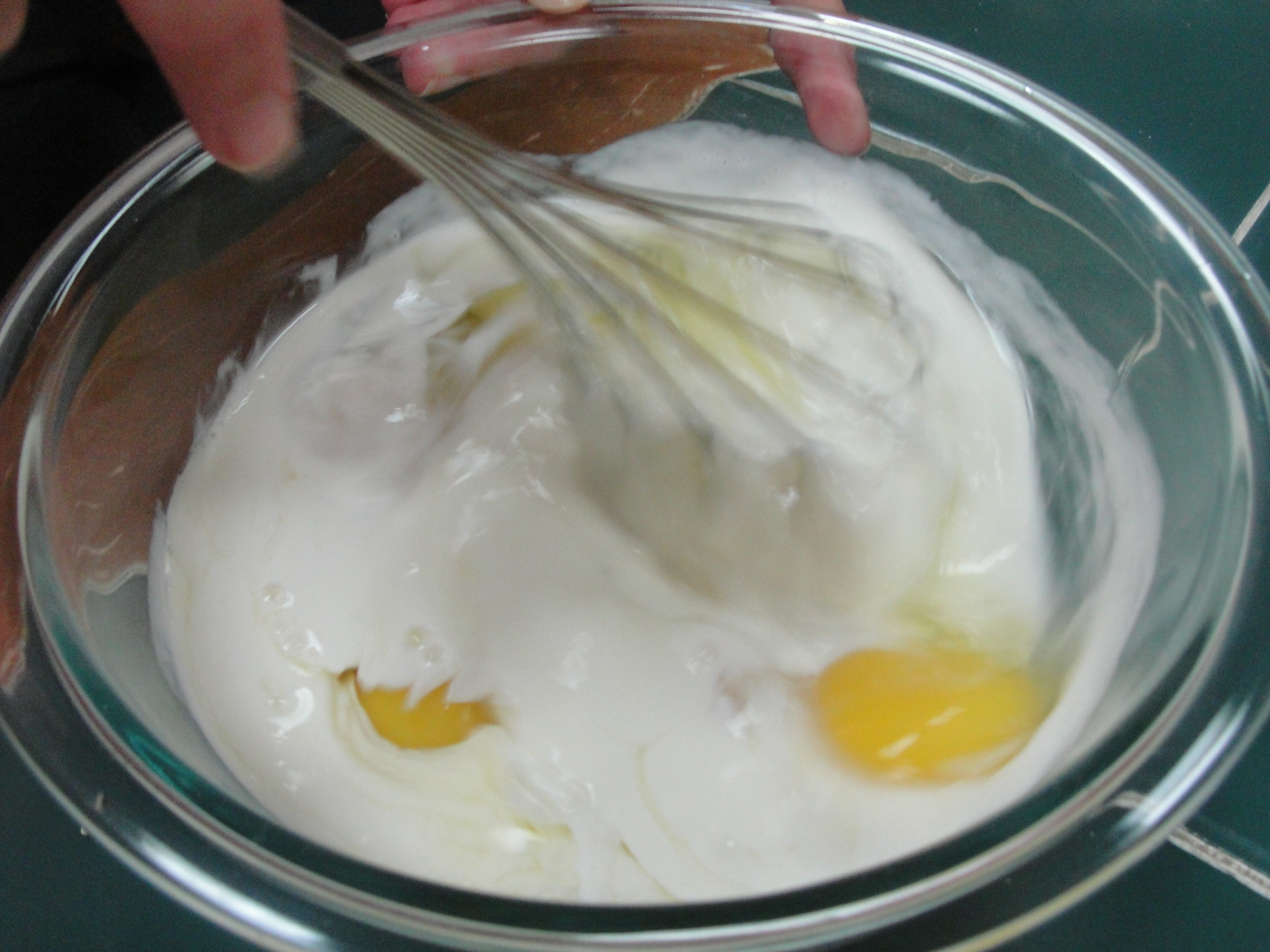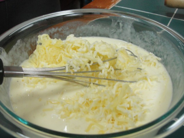 Crack the eggs in a bowl and whisk with the heavy cream and salt and pepper.