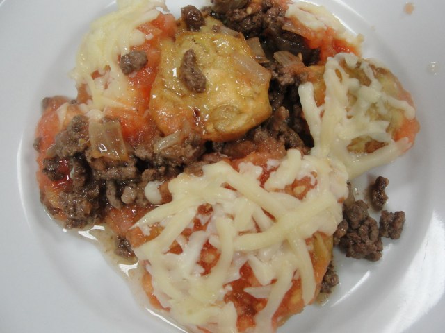 Using a saucepan, melt one tablespoon of butter and fry the onion until golden yellow. Add the ground beef with some salt and pepper cook until it is done.