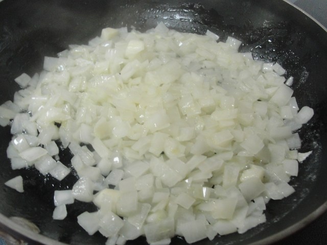 Heat the butter on a medium flame, then add the onion and stir until soft.