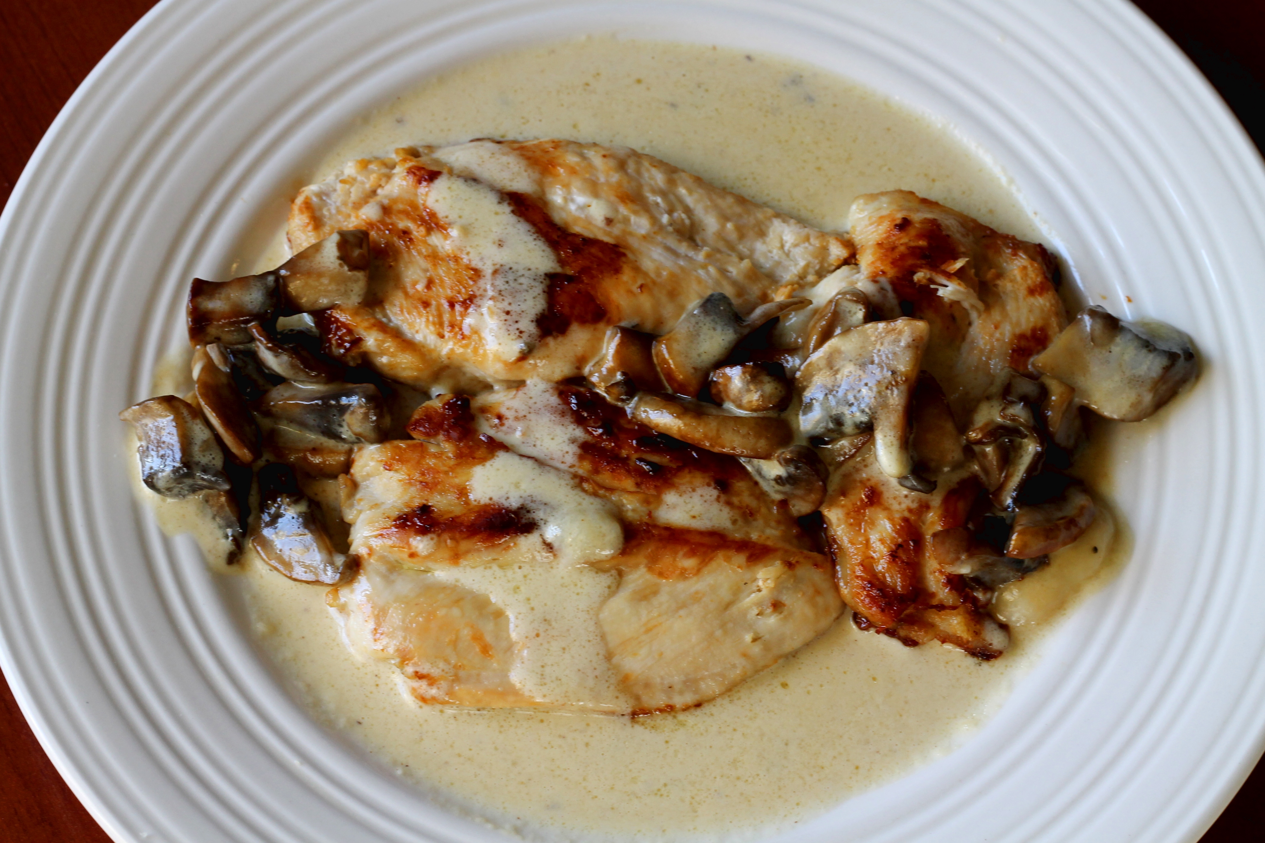 Add the mushroom after the cheese melts and add directly on to the chicken.