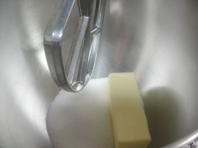 Using a mixer, beat on medium the butter with sugar (butter should be at a room temperature).