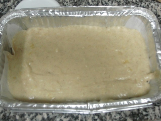 In a bread baking foil, pan – whatever you prefer- Place a wax paper on the bottom and grease the sides.