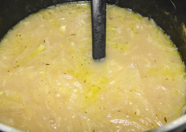 – Caramelize the onion and stir around to get them all coated in the butter and olive oil.
