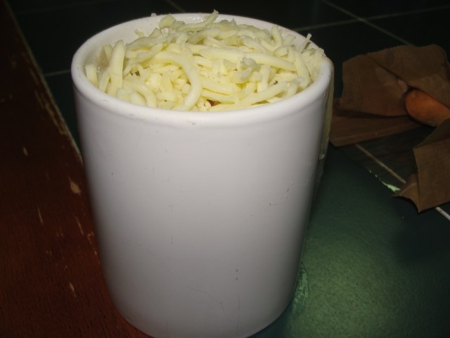 – Grade some cheese (your choice) – You can mix cheeses as well.