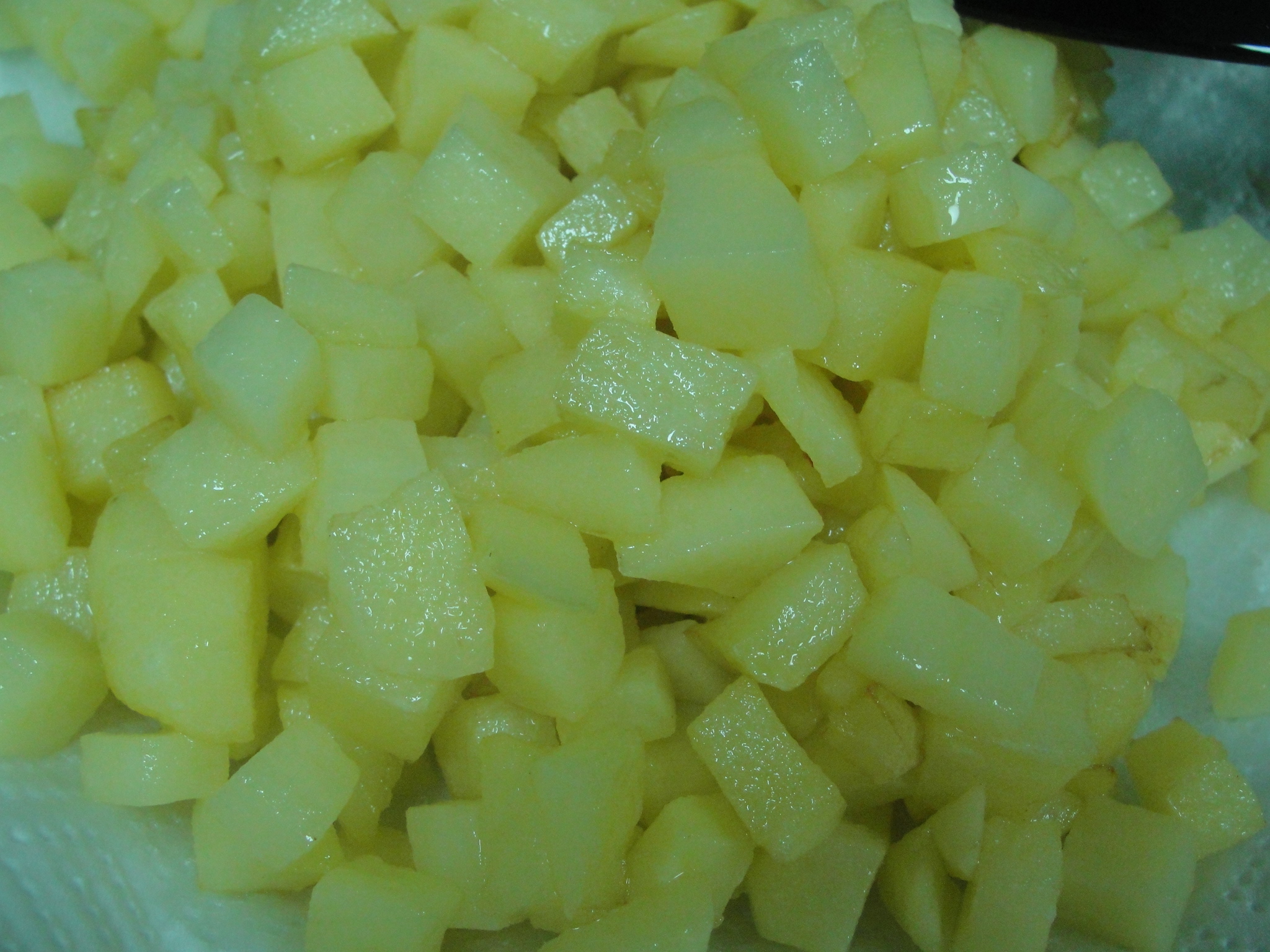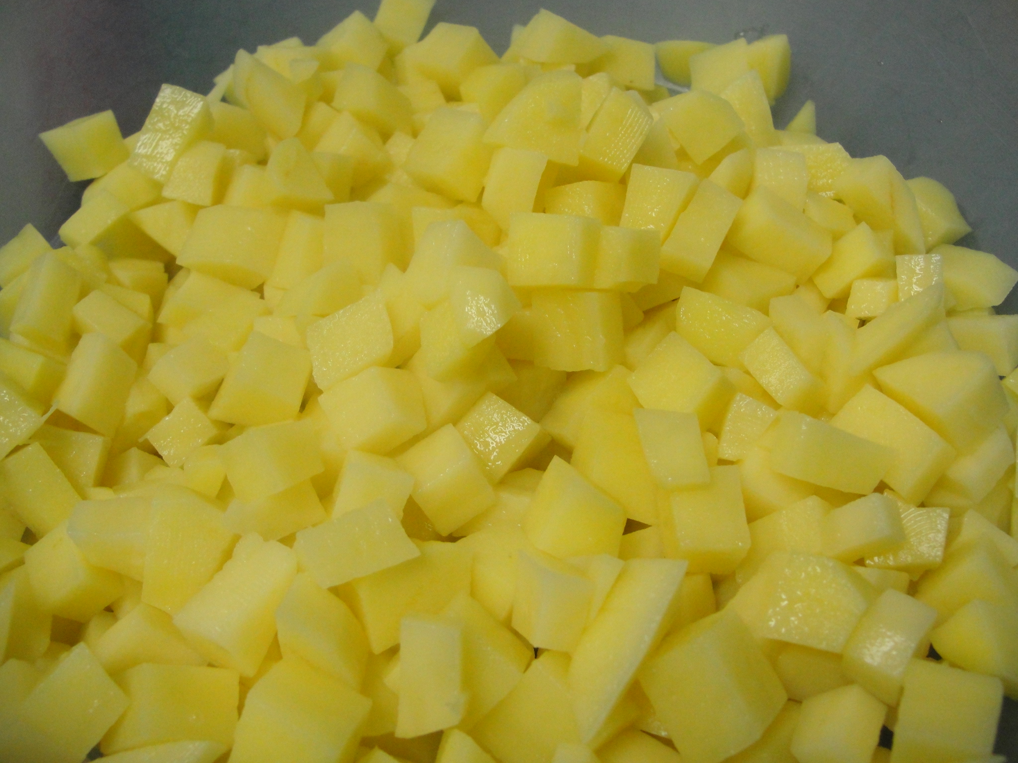 Cut the potatoes into 1/2 inch cubes.