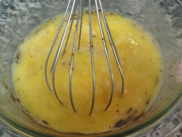 Beat the eggs, add salt and pepper then mix with the fried potatoes.