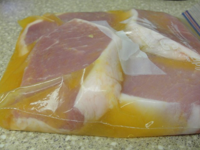 First marinate the pork chops with orange juice, lemon, salt and cumin for 2 hours.
