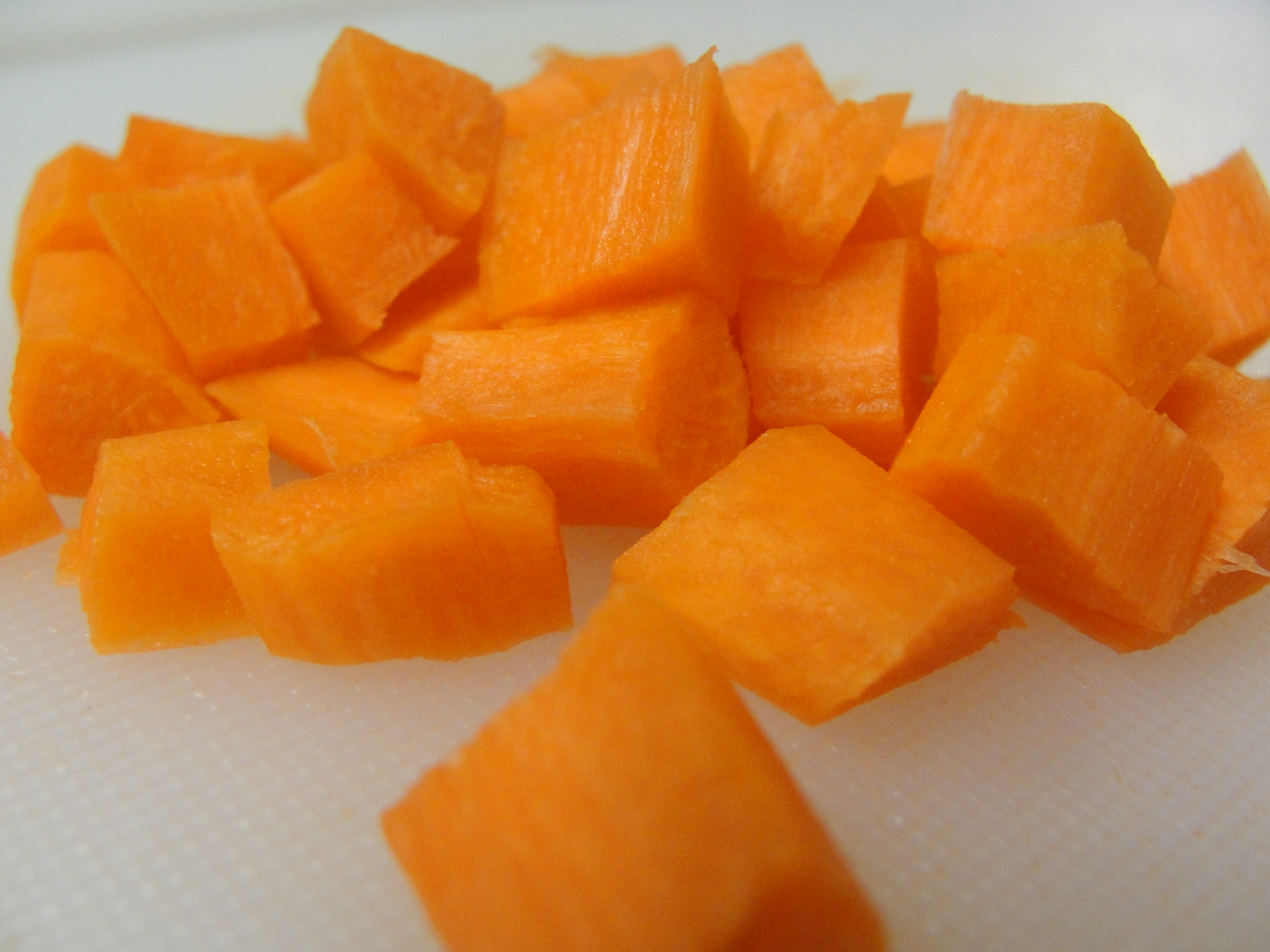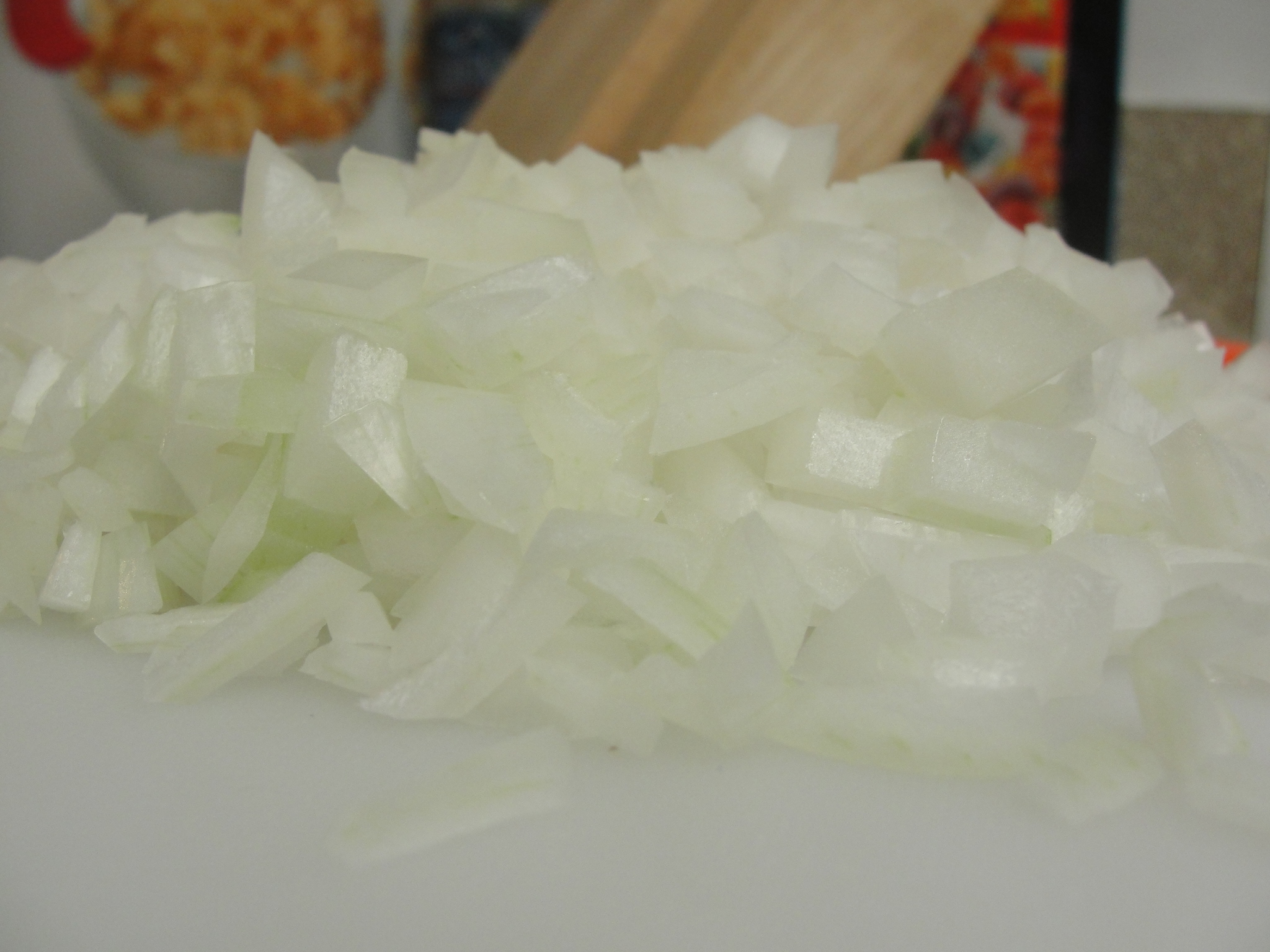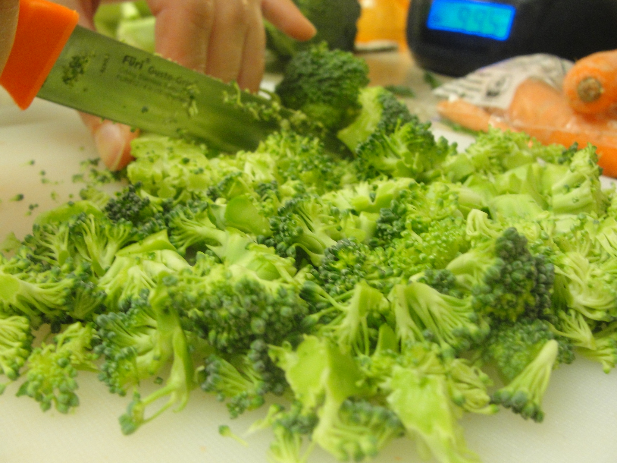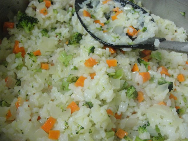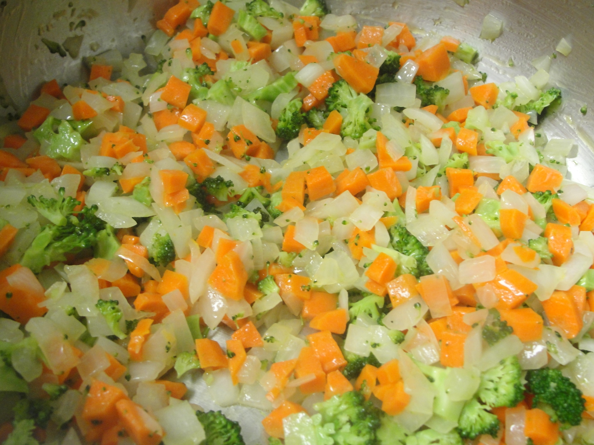 Meanwhile, dice the onion, carrots, broccoli for the rice.