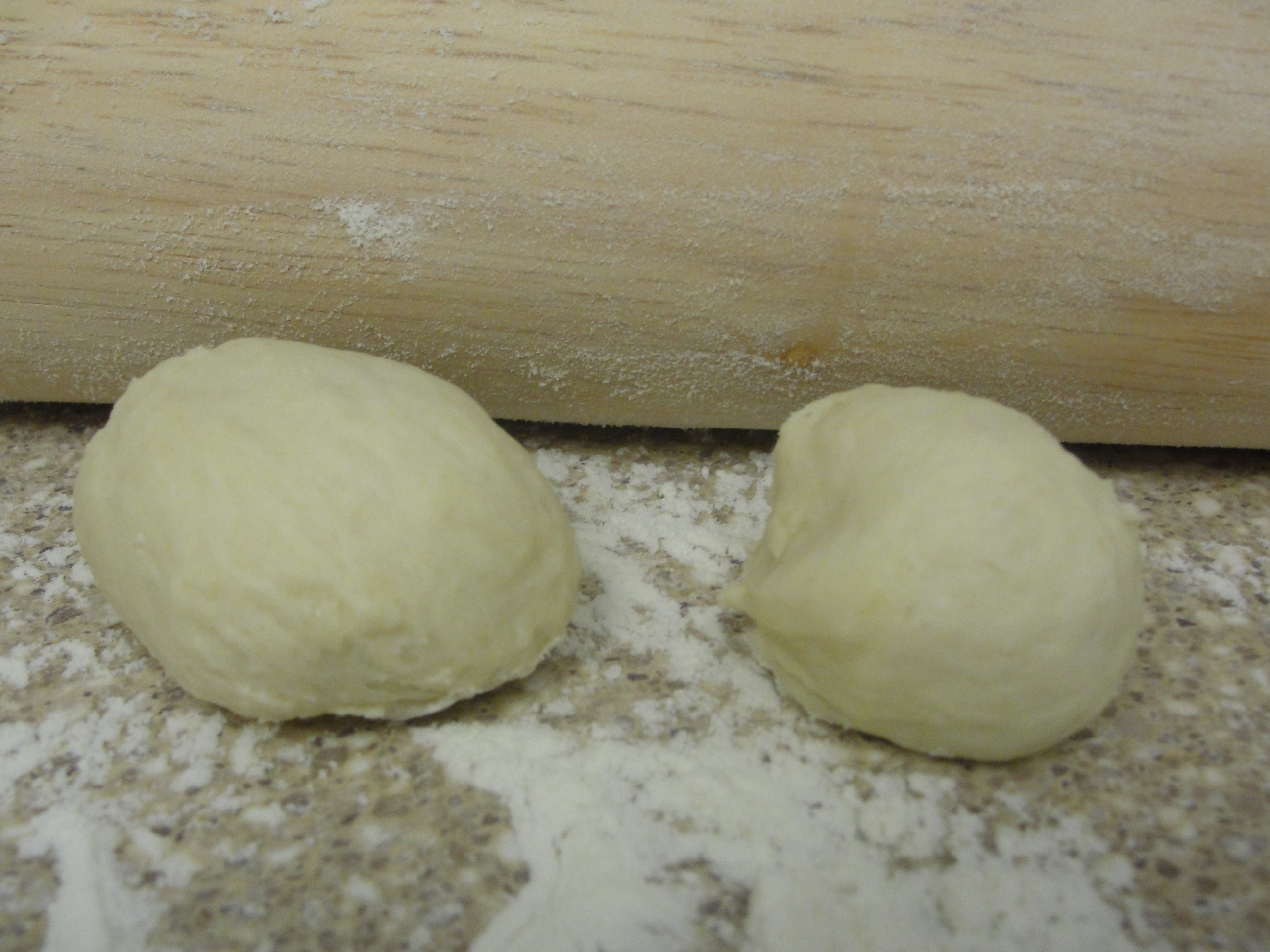 Use a rolling pin to flatten the dough (put some flour on the rolling pin and surface so the dough does not stick) and flatten into a round shape.