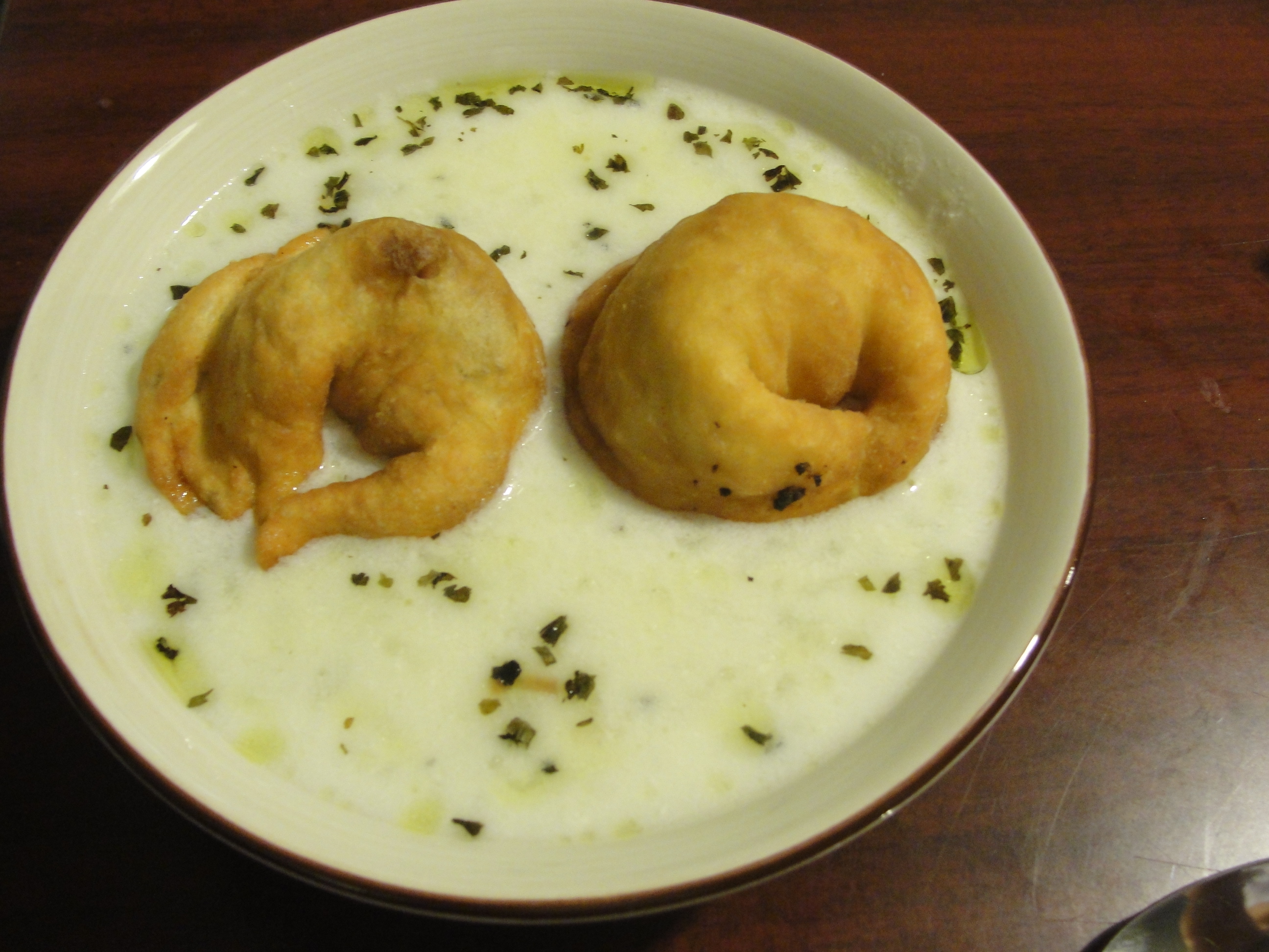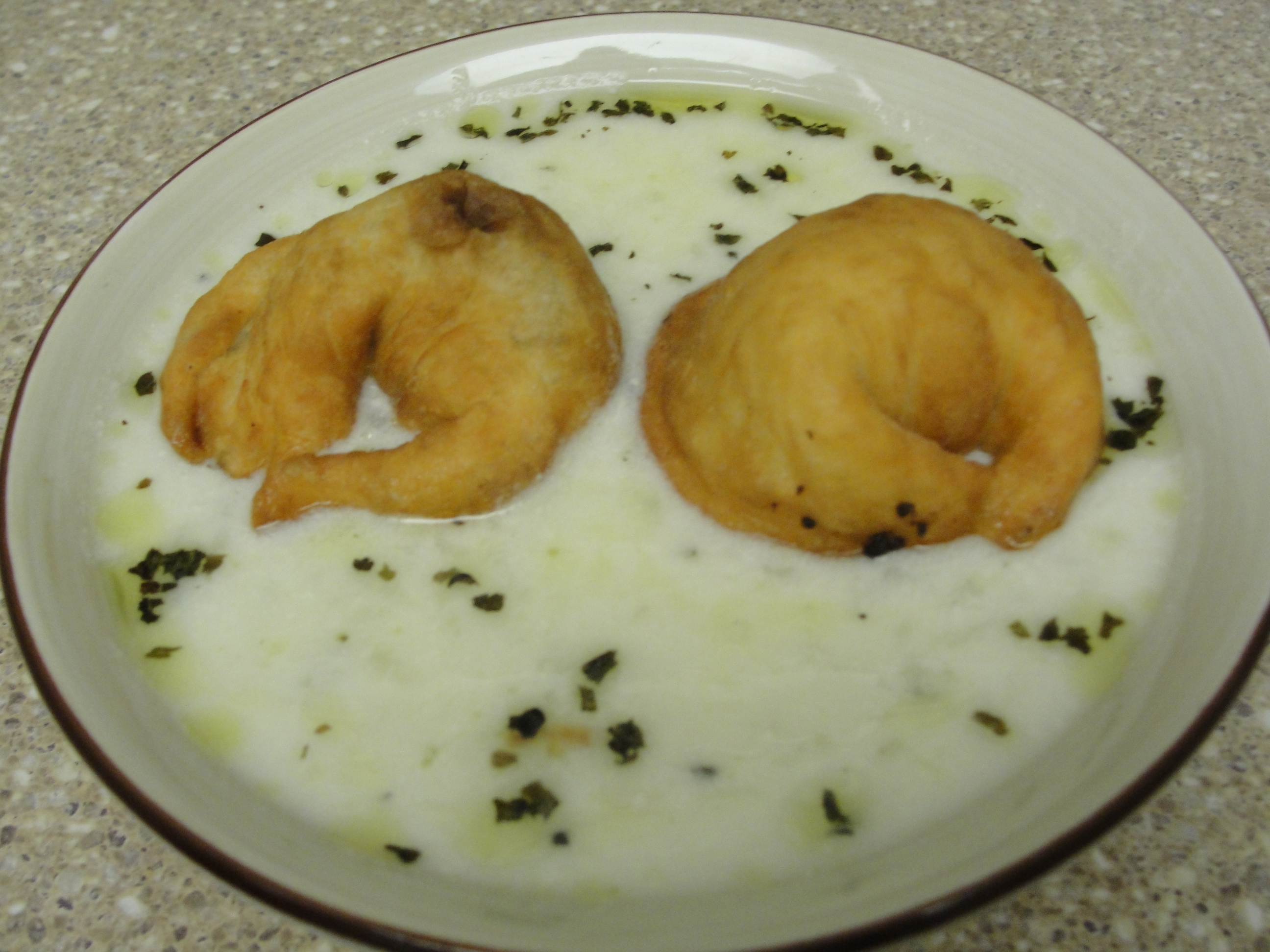 Mix the yogurt with the rice, the egg, and the cold water until all are blended well.