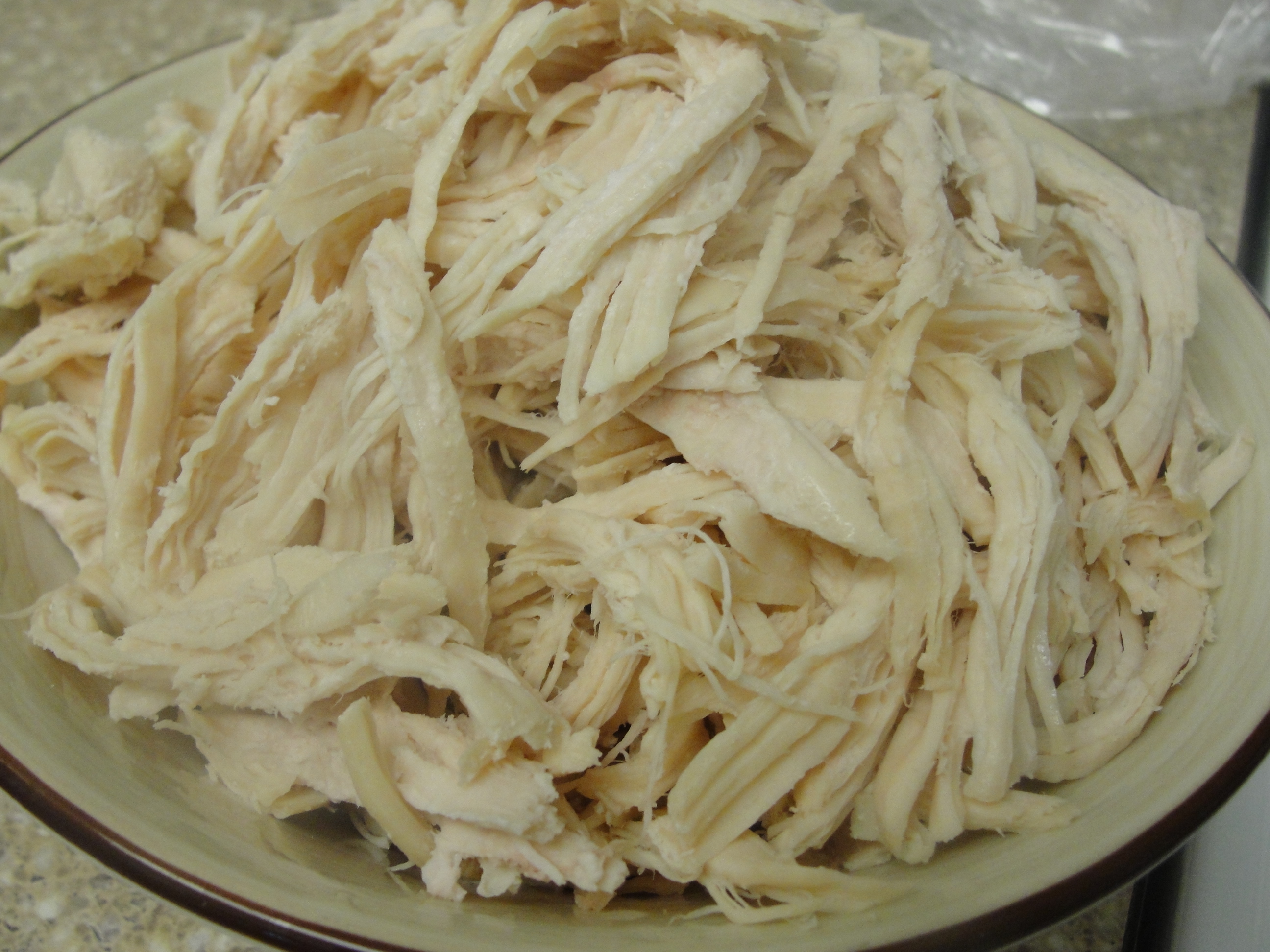 Boil the chicken breast until it is fully cooked skimming the froth as it appears.