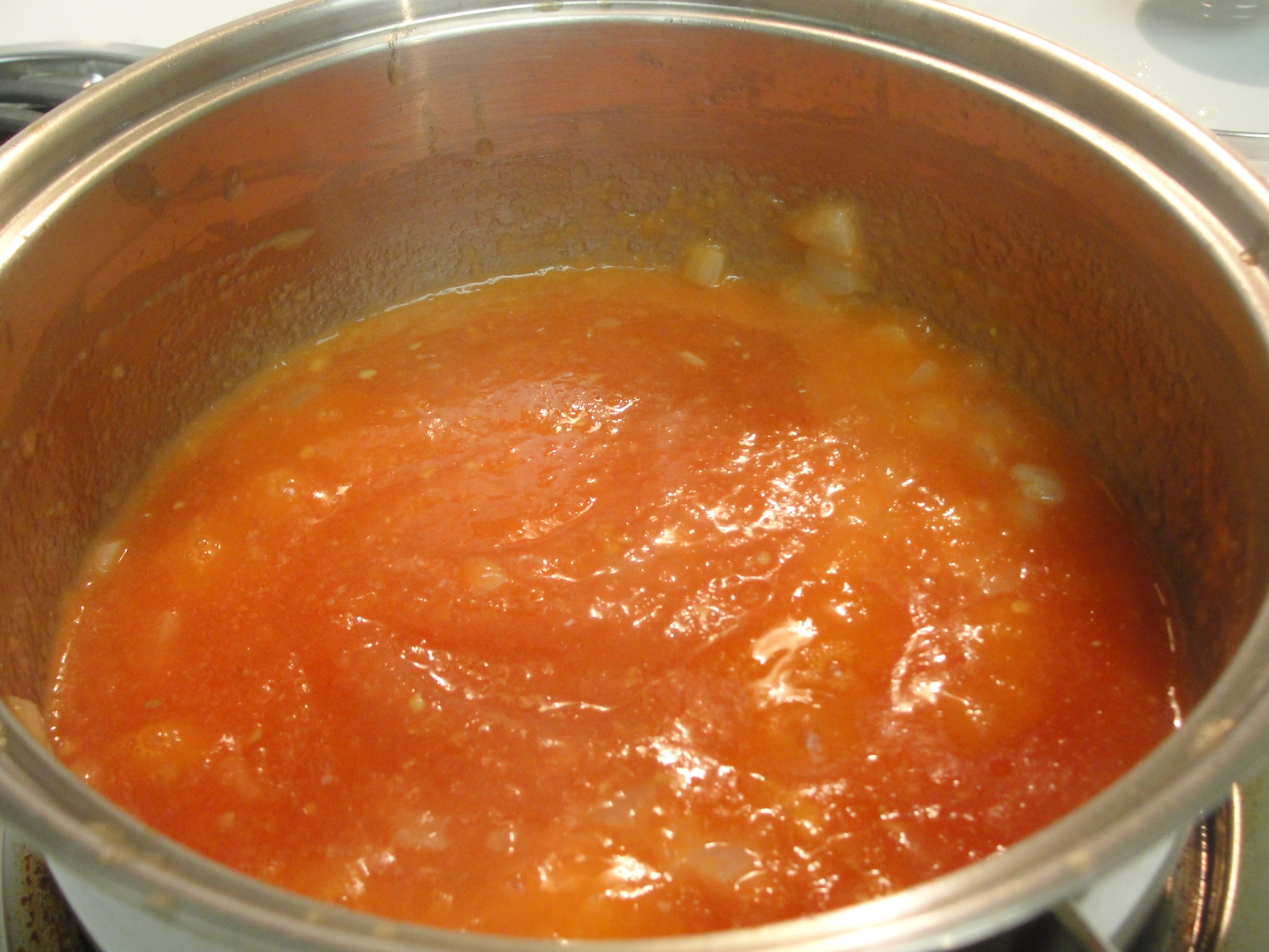 Add the tomato sauce with some salt and pepper and cook on a low heat until the sauce gets thick for about 30 minutes.