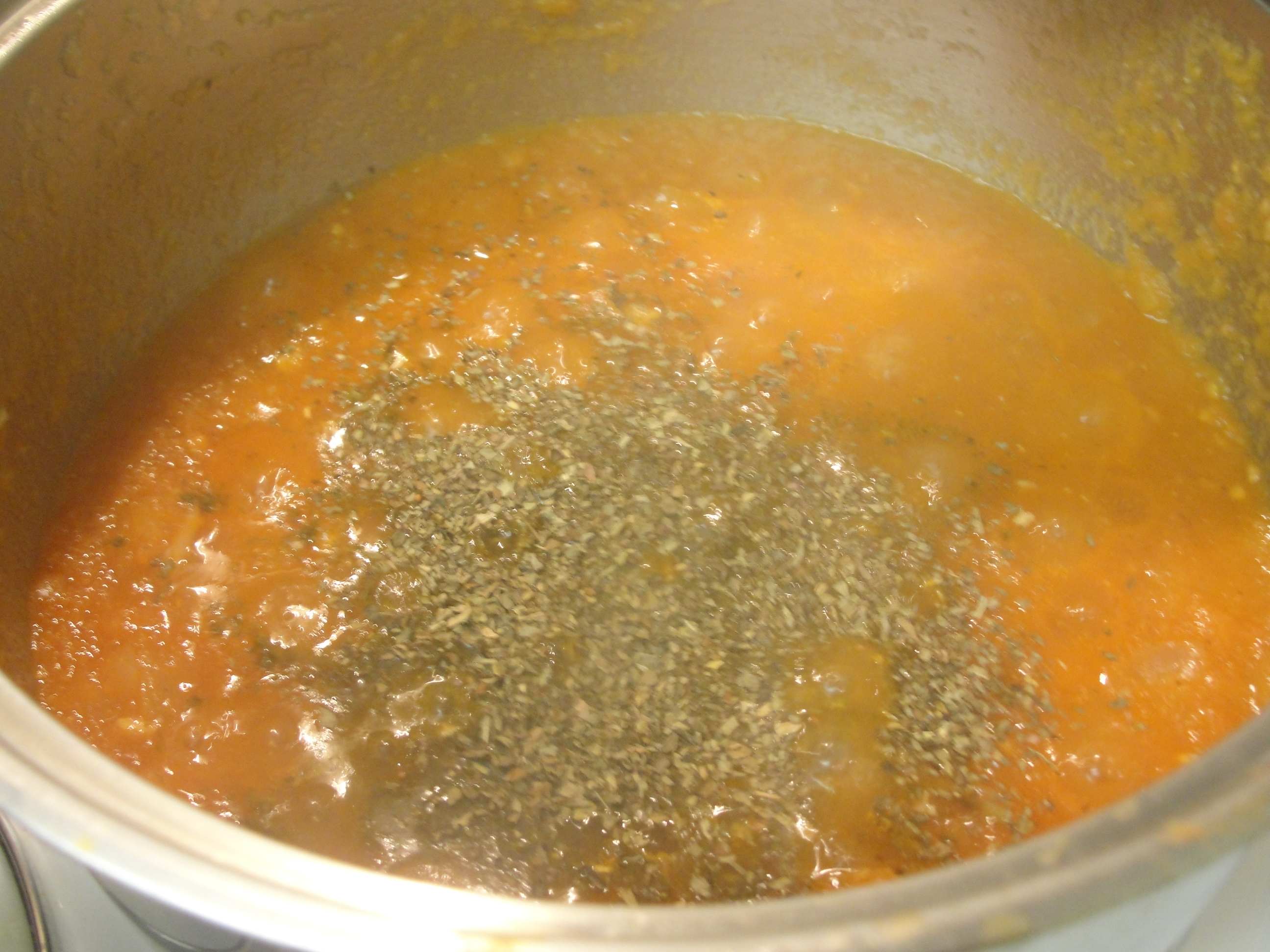 Once the sauce gets thick, turn off the flame and add one teaspoon of ground thyme and one teaspoon of basil.