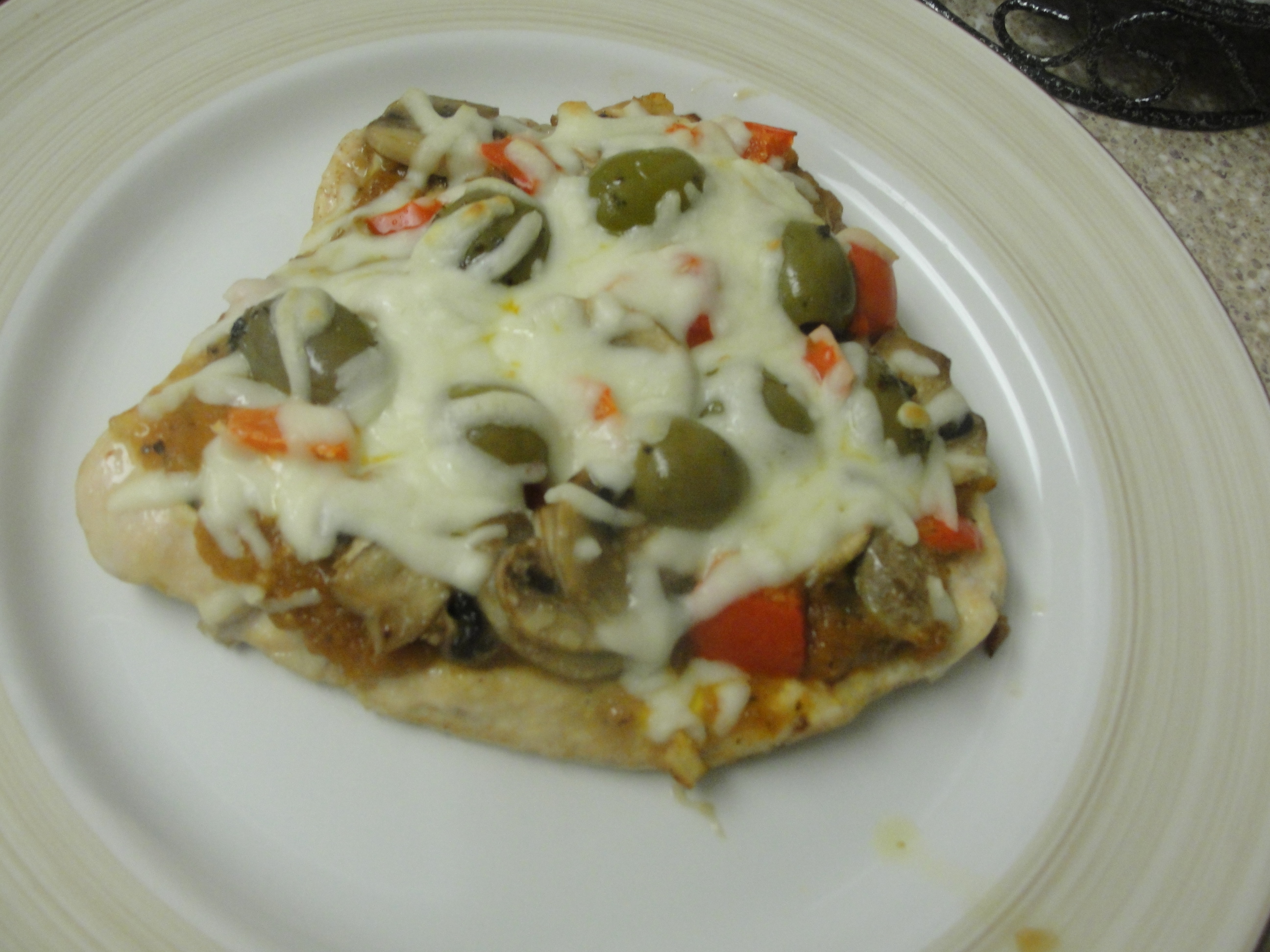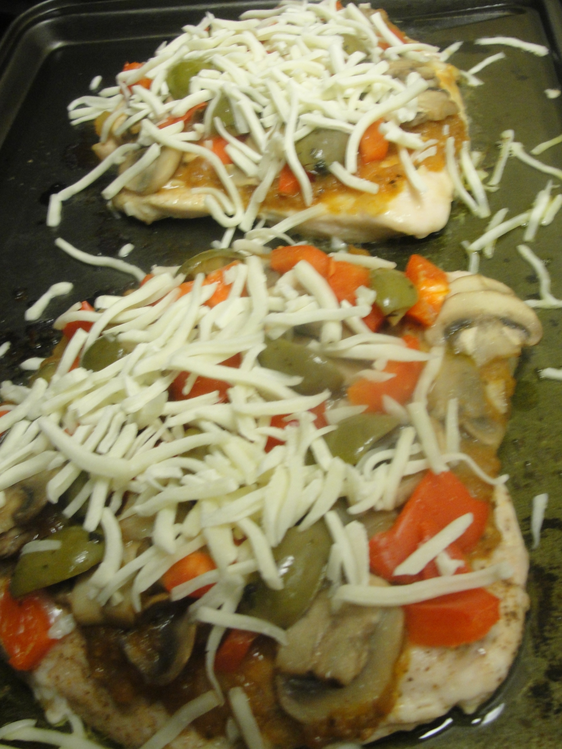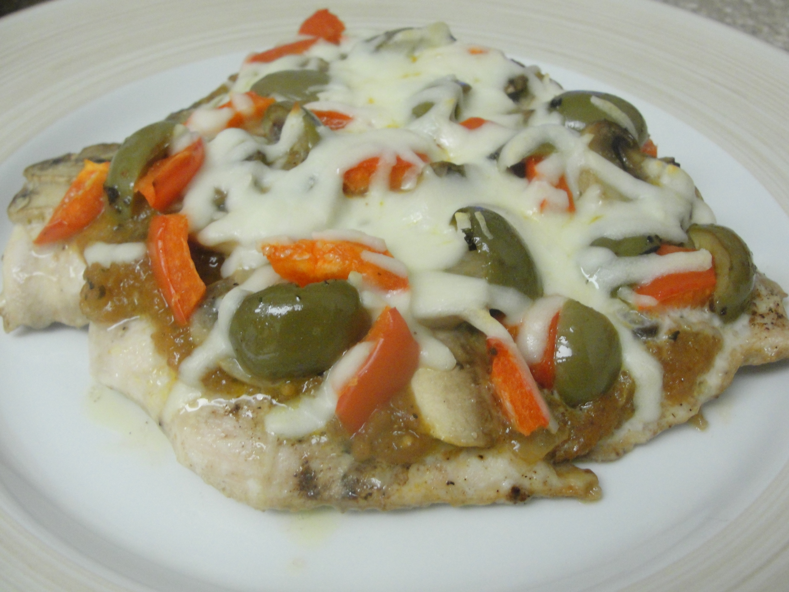 A healthy, low carb, pizza style, baked chicken breast. A very tasty twist to pizza and chicken at the same time. You can use this recipe and add whatever you like on your pizza to the chicken breast. Here are the toppings that I usually love to have on my pizza.