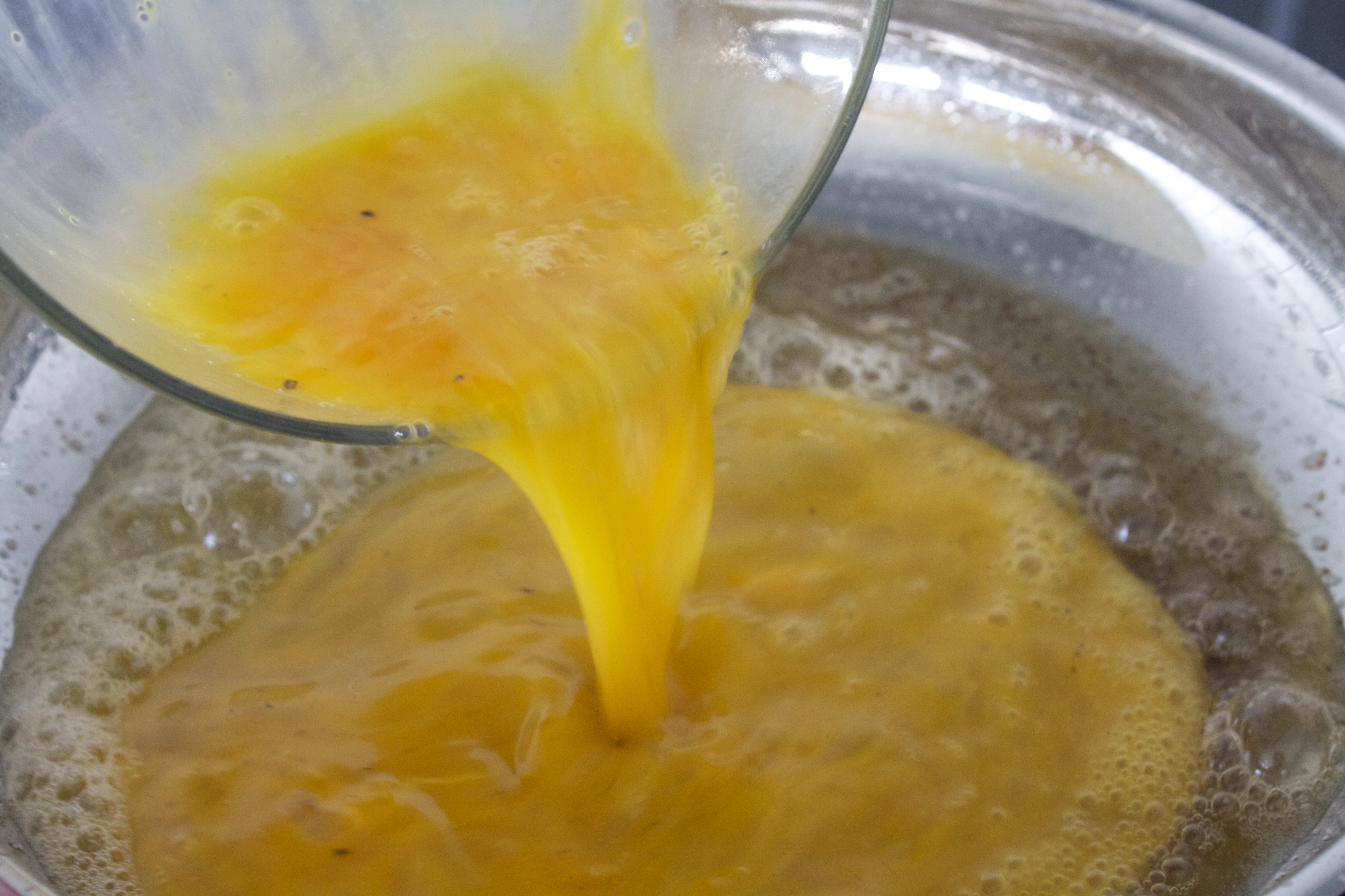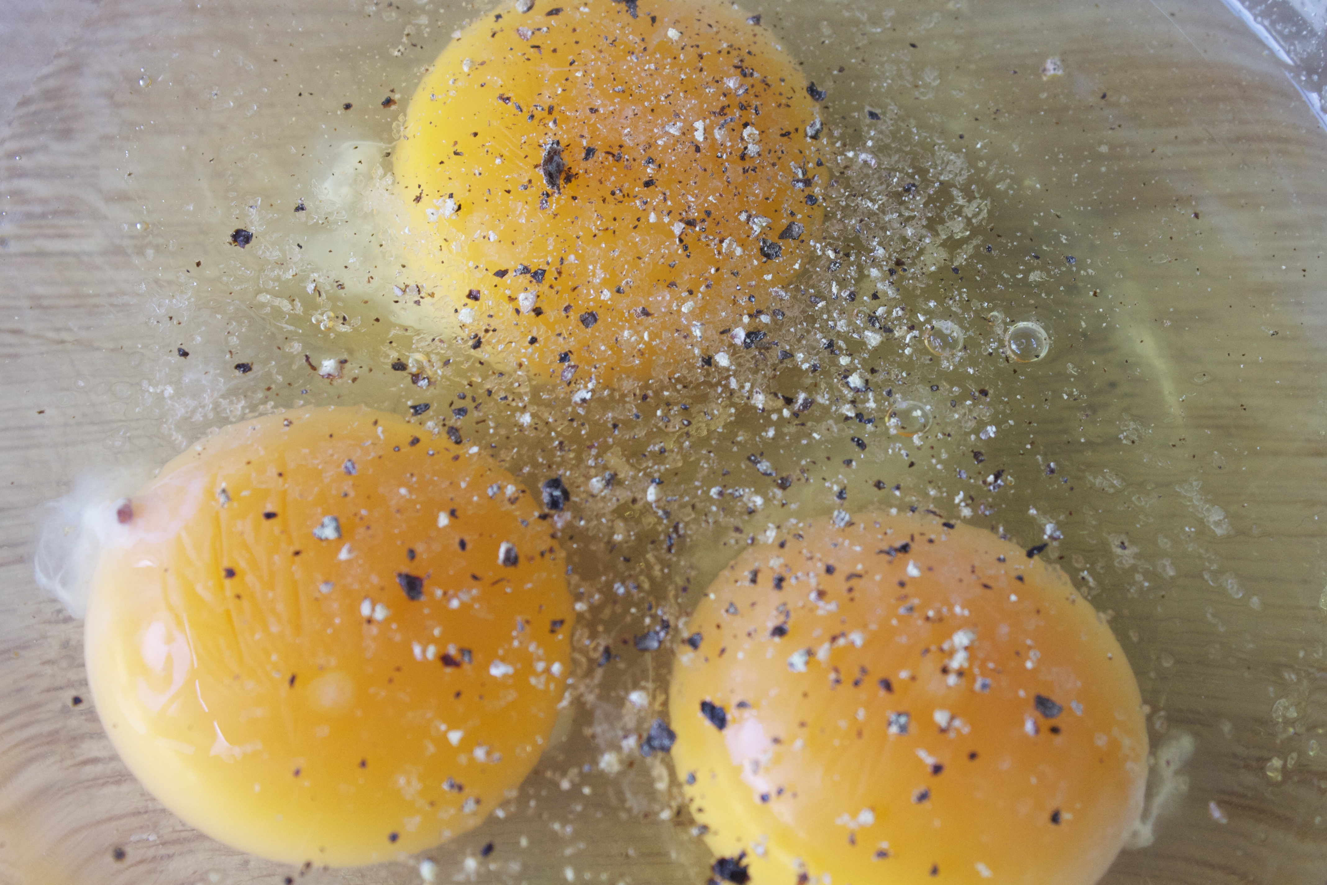 Meanwhile, whisk the eggs in a small bowl with salt and pepper.