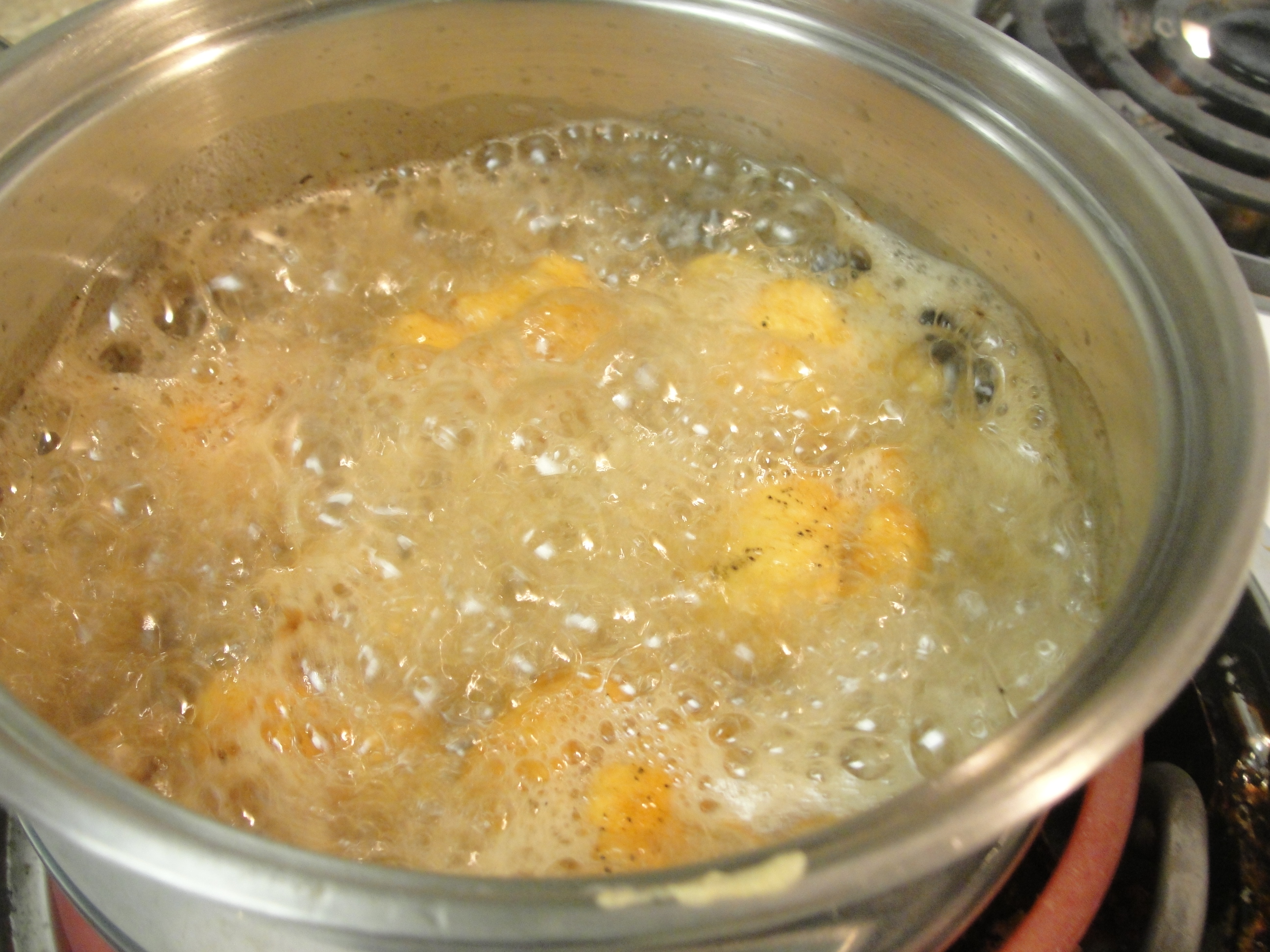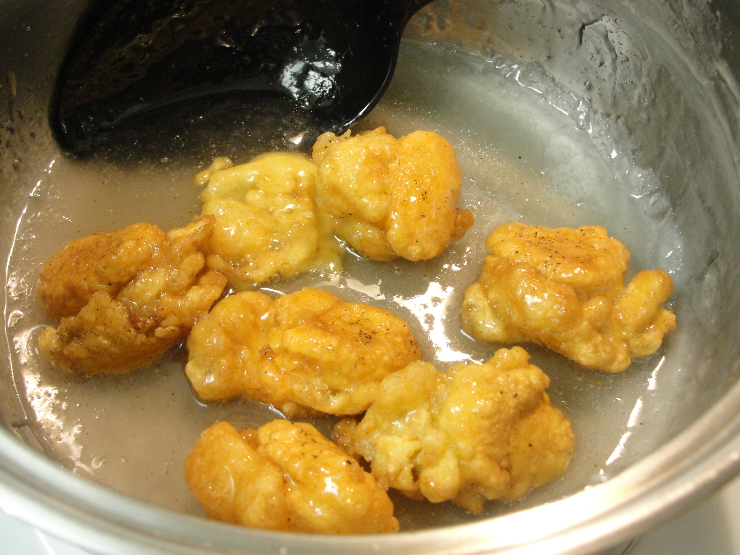 Heat one stick of butter with some vegetable oil then using a small spoon, pour a little of the mixture and deep fry until it is golden and fluffy.