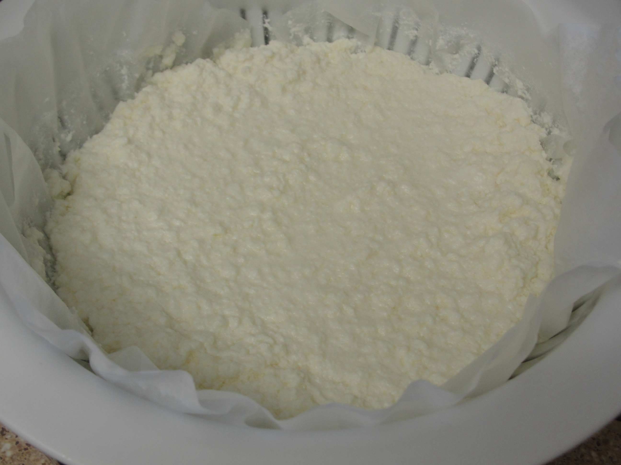 Using a cheese cloth (I used coffee filters this time), place it on top of the strainer and pour the yogurt into it.