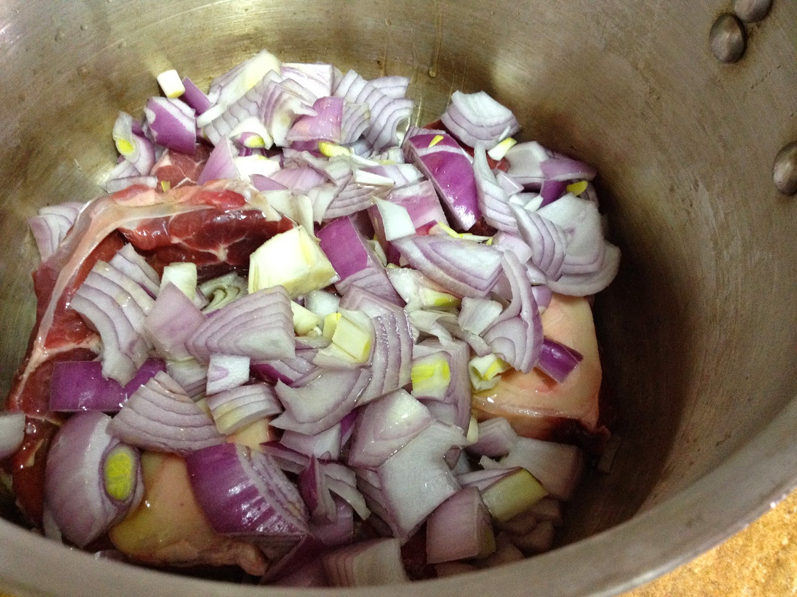 2 lbs of Beef or lamb cut into big pieces leaving it on the bone.