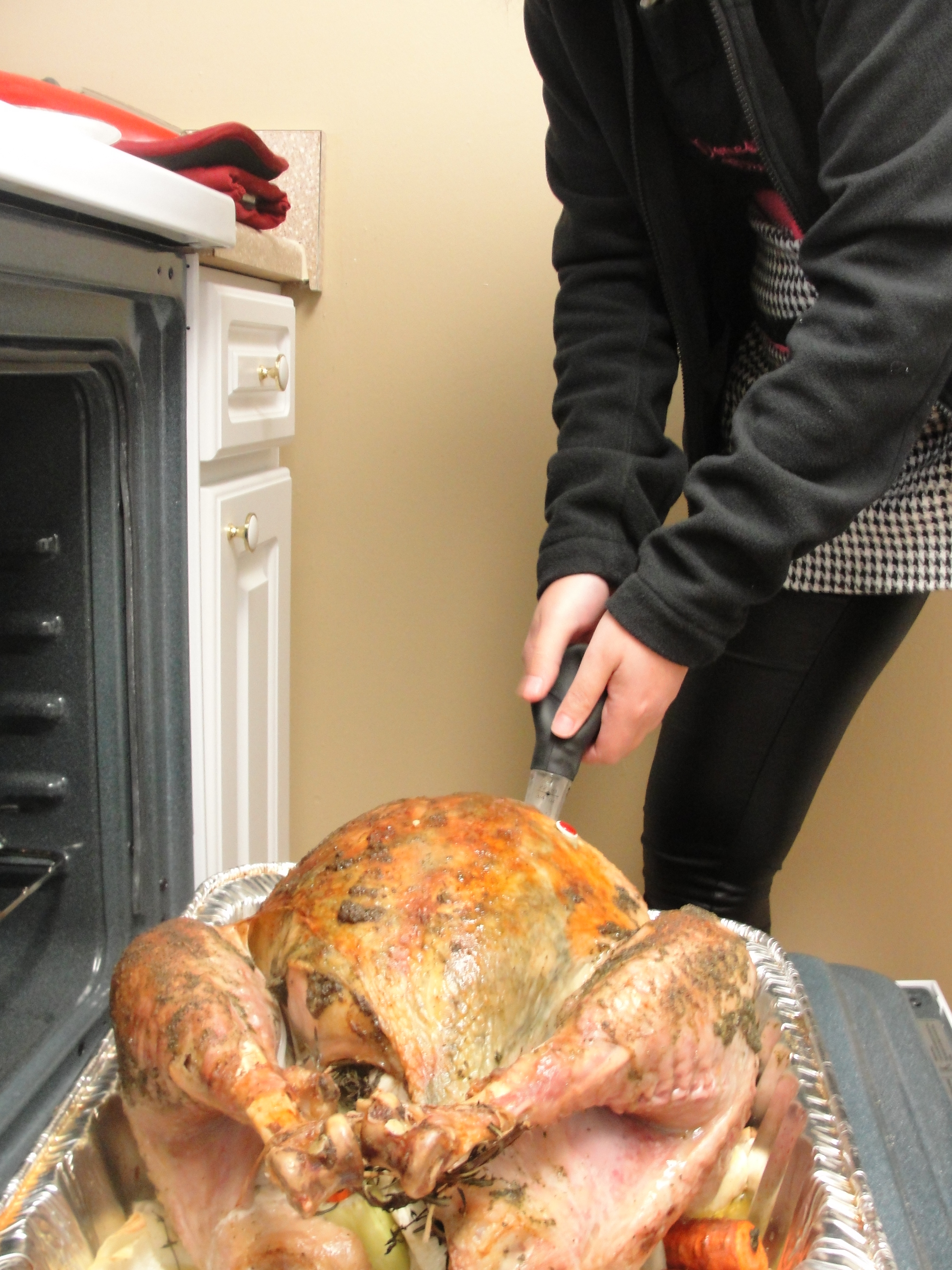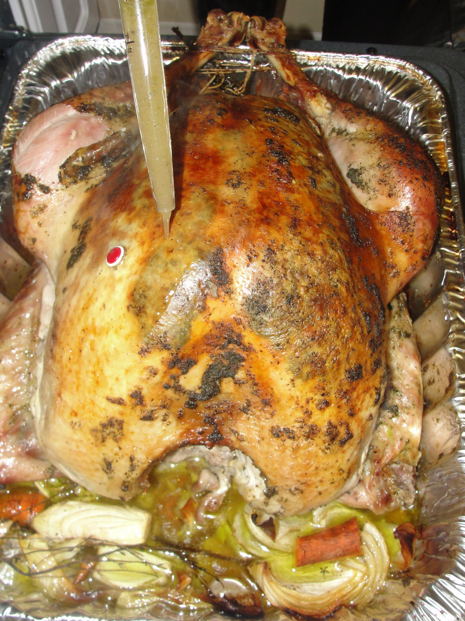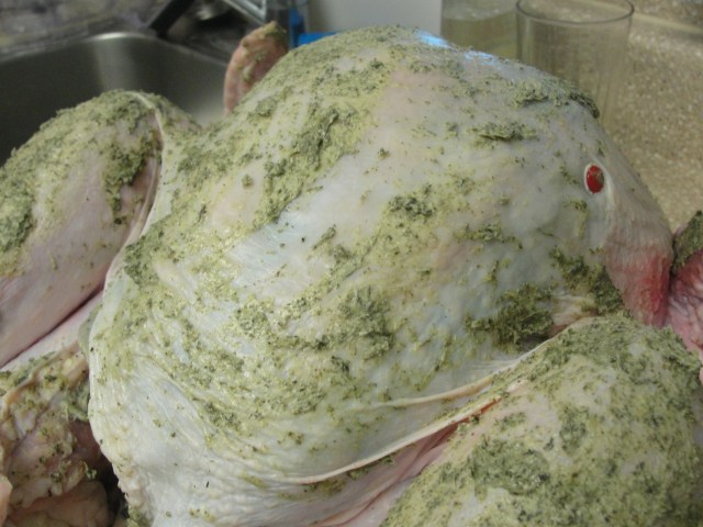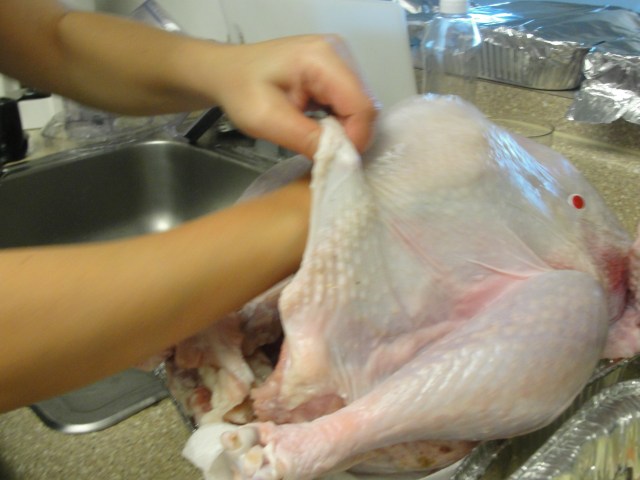 Sew the other side and tie the legs together and cover the chicken with a stocking (women’s stockings…yes you read it right – and yeah make sure they are new and clean).